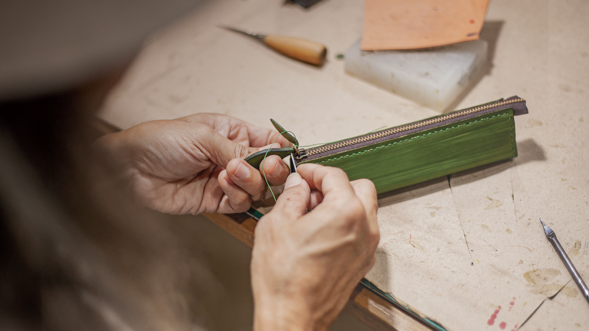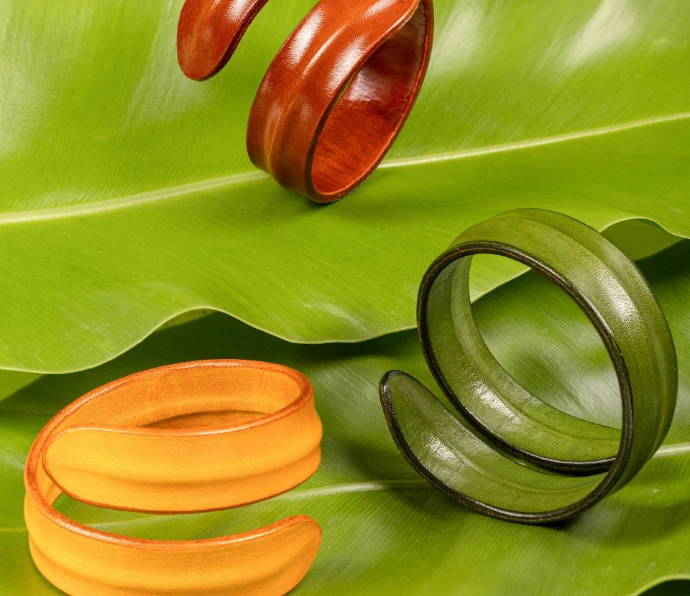 Through material exploration, we discovered one that naturally resists leather dye, creating a unique texture.
