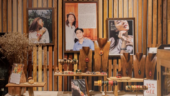 This journey led to the jewelry collection “Bupha Gumlai,” inspired by the gentle movement of flowers and leaves.Each piece carries Papa’s dreams and the love